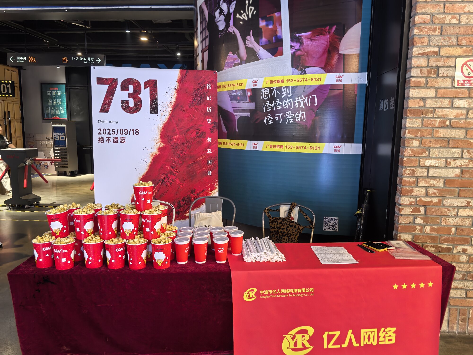 9月20日19时31分,亿人网络在五彩城CGV影城4号厅包场,特邀客户与全体员工共同观看电影《731》。